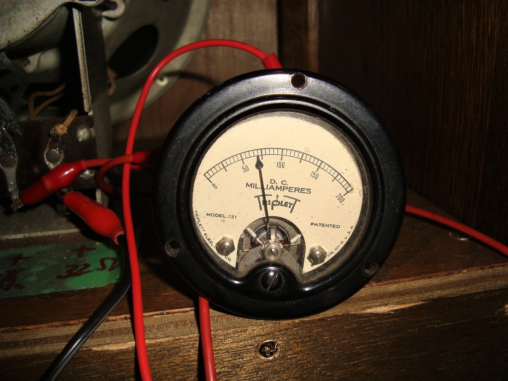 出来上がってから電流値の確認です、大体50mA位と思っていましたので、整流管も83より小さい82で
